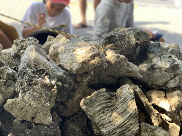 喜界島では、「サンゴの化石」よりも普通の「石」を見つけることのほうが難しいほど、島の皆さんにとっては身近な存在です。