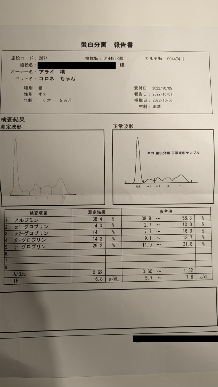 譲渡会でコロネの里親になって、8/24に初診断されてから、6週間経過後、