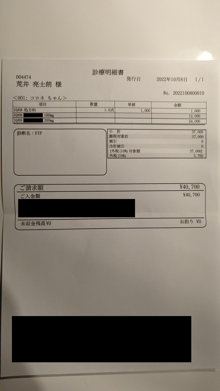 診療明細書は頂き次第アップし、状況の報告はさせて頂きます。