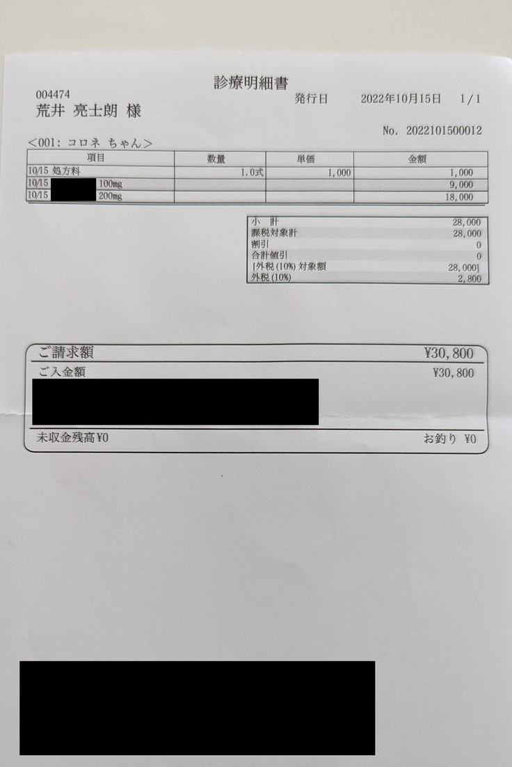 診療明細書は頂き次第アップし、状況の報告はさせて頂きます。