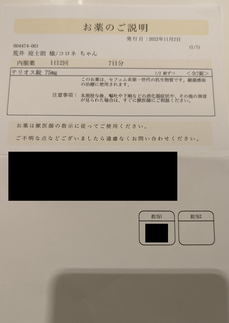 また、FIPのお薬は通常通り4日分を頂いてきました。