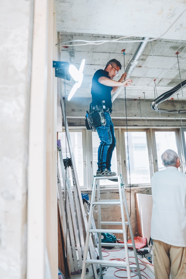 ▲全店舗からお世話になっている職人さんにより、絶賛内装工事中! photo by つばめフォト