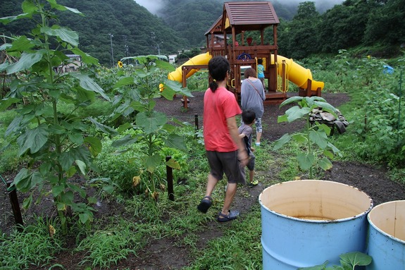 先週末、釜石市内が記録的な豪雨に見舞われる中、仙台から日本冒険遊び場づくり協会のあそぼっかーとプレーリーダーのぶんちゃさんが来園してくださいました。