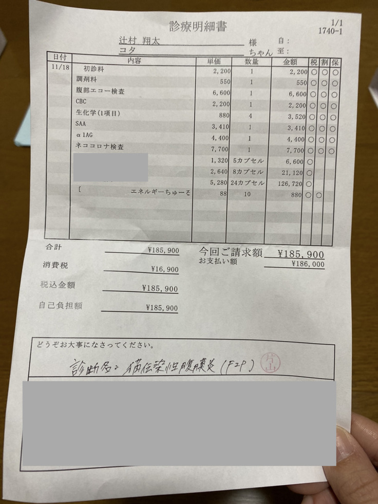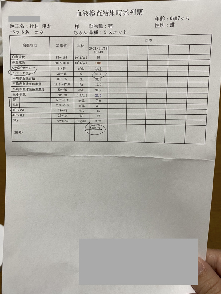 本日の検査は、84日間で投薬が終了できるかの診断をいただく、FIP治療ではとても重要な検査です。