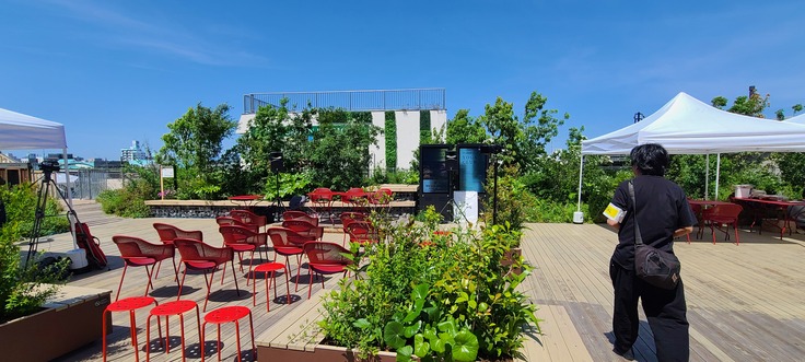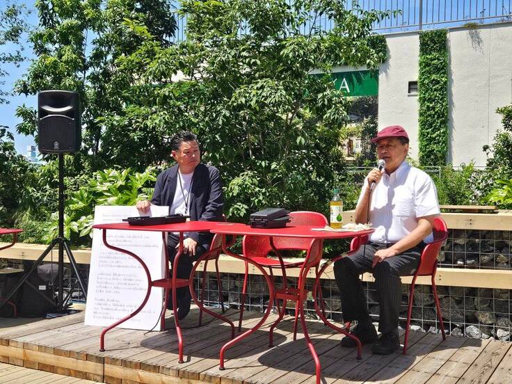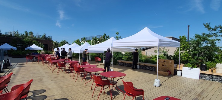 強風が心配されましたが、当日は快晴、テラスの日差しは想像以上に強く暑かったのですが、