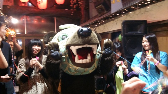 次に1回目のビンゴ大会を開始、最初のビンゴとともに、メロン熊が来襲!!