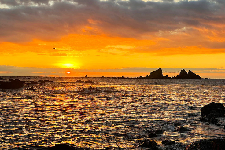 磯釣りのメッカにもなっている景勝・三ツ石の朝焼け