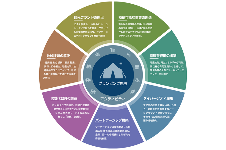 その時から藤田さんたちはずっと「神奈川県県西地域でグランピング施設をつくりたい!」という、熱い想いを抱いていました。自然との関わりや地域食材の地産地消、そして誰もがその恵みを楽しめる施設をという心に共感し、私たちも実現を応援しています。