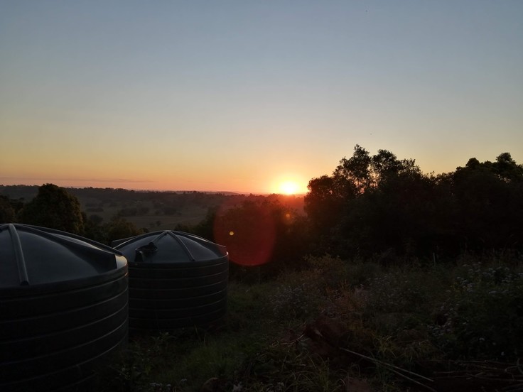 [オーストラリアの田舎の風景。まさにウガンダで作っているような貯水タンクを、シャワーに利用している地域で暮らしていました!]