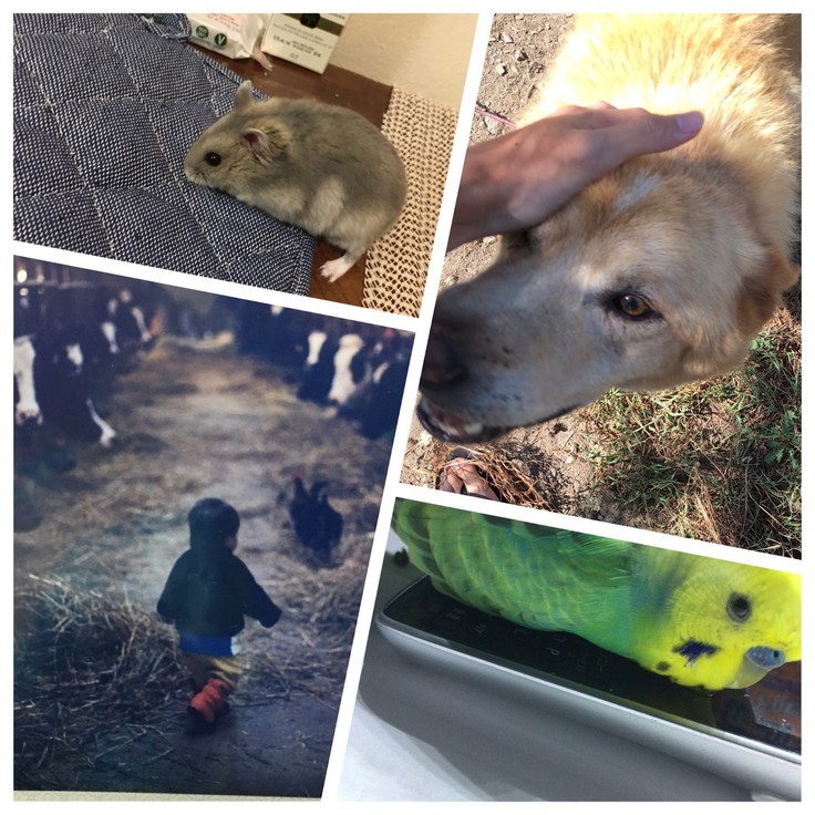 左下は祖父母の牛舎で、他の子供なら怖がるような牛に、近づいて行けるくらい勇敢だったみたいです笑 右上の犬は牛舎の入り口にいて、毎年帰省するたびに、尻尾をふって寄ってくるのが愛らしいです。