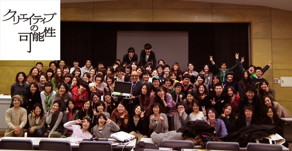 「クリエイティブの可能性」は、大学の講義です。しかし、それは同時にプロジェクトでもあります。これは、普通の講義ではありませんでした。まず、生徒が所属する大学がひとつではありません。京都には50の大学があります。この50の大学は、この授業の受講資格があり、単位を取得できました。ですから、就職活動をする人も、お医者さんになる人も、弁護士になる人も、学者になる人も、学校の先生になる人も、広告屋さんになる人も、作家になる人、シンガーになる人、海外で活躍する人、フランスにゲイ修行にいった人、仏門に入る人、誰かの弟子になる人、もちろんお母さんになる人もいます。一年に約200人の生徒がいましたから1400人ぐらいいた勘定になります。