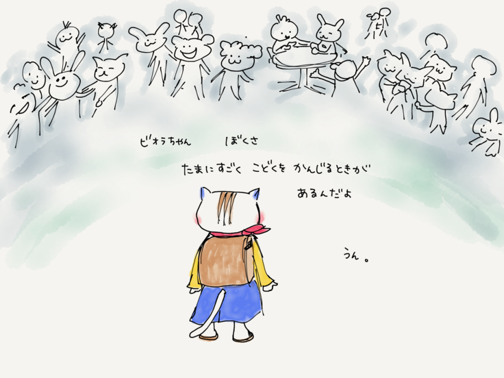 インターネットの普及により、子供達はどんどん機械で作られた綺麗なものを目にするようになり、Youtubeなどでも気軽に動画配信が視聴できる反面、本当に必要なアナログ的な要素が置き去りになっているのでは、、といった疑問から、アナログで絵本をめくるような単純な2分程度の動画で、かつ考えさせられるような内容の発信をしたいと思い、最初は「絵本動画」という形になりました。