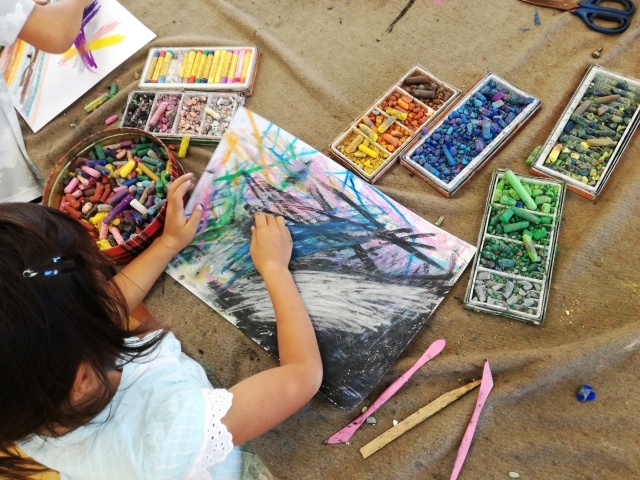 芸術面では、ちょっと変わったテーマ絵画を行います。内面の感情を引き出すために「未来」や「愛」など抽象的なテーマから、内面にある自分の色や感情を表現していきます。また、文字アートや書体の整え方、討論を交えた思考力向上アートなど多彩な授業を提供します。