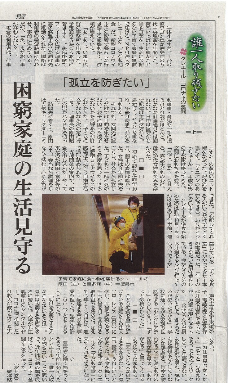 クレエールが徳島新聞に特集で掲載されました