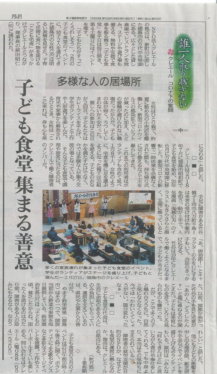 ●クレエール子ども食堂の参加券をお送りします。(希望者のみ。2022年3月まで有効です。)