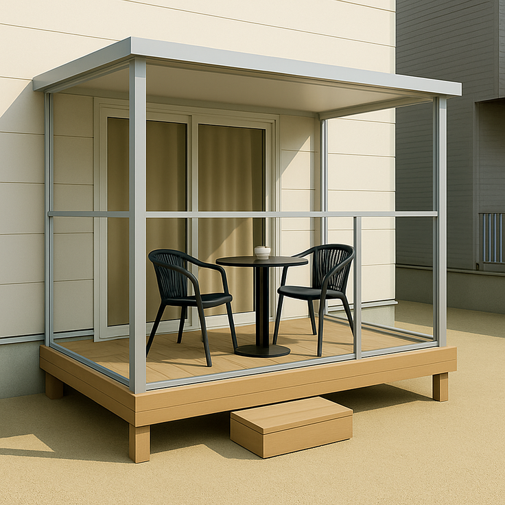 2階建て自宅の1階部分(約20㎡)を猫エリアにし、現在屋外となっているベランダ部分(約8㎡)をカフェエリアにします。