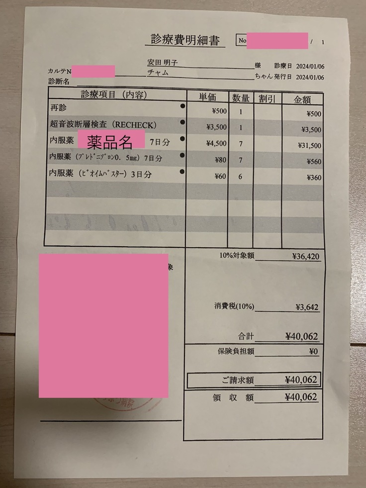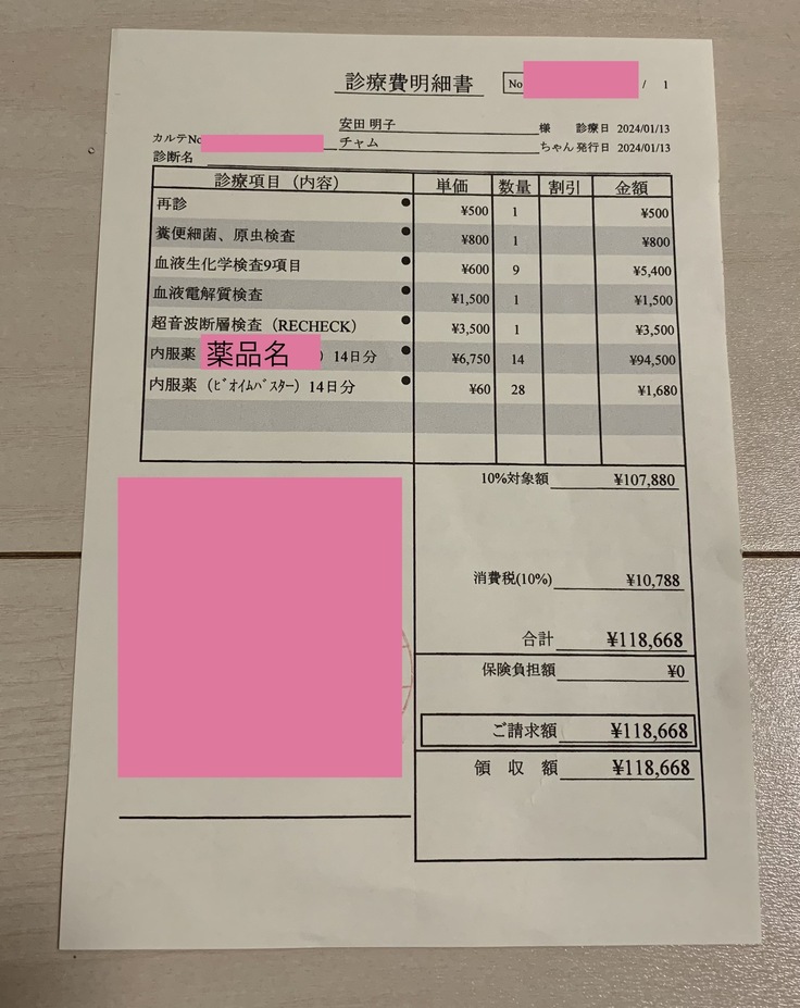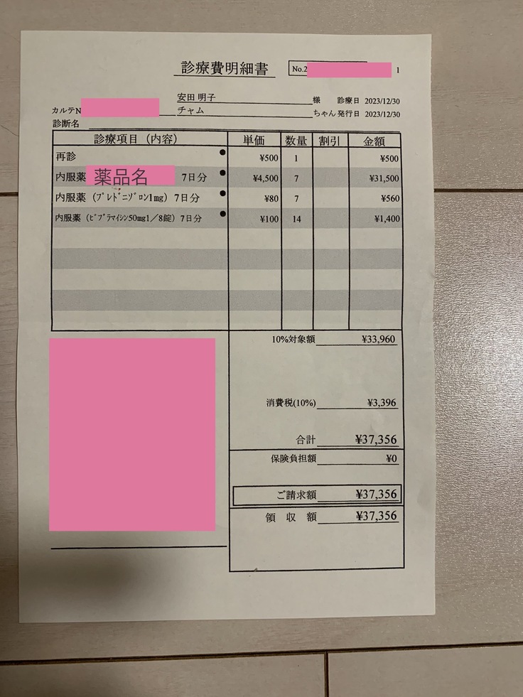 まだ投薬期間中なので概算になりますが、84日間のFIP薬代合計約727,650円~762,300円になる予定です