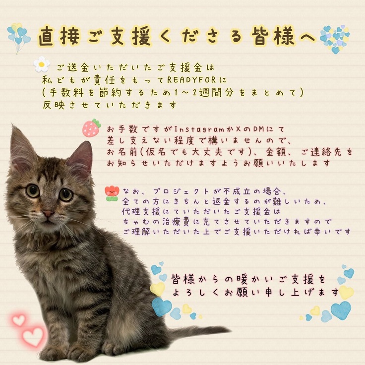 猫伝染性腹膜炎を患ったポンちゃんの明日をつないで頂けないでしょうか