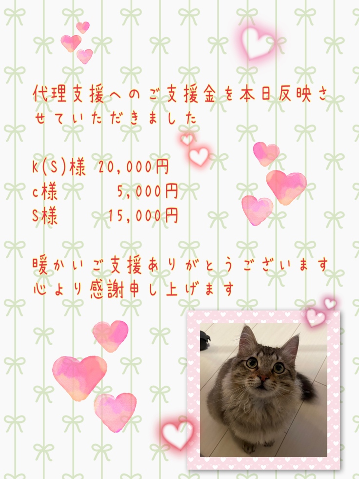 まずは代理支援によりご支援くださいました方からのご支援金を反映させて頂きました