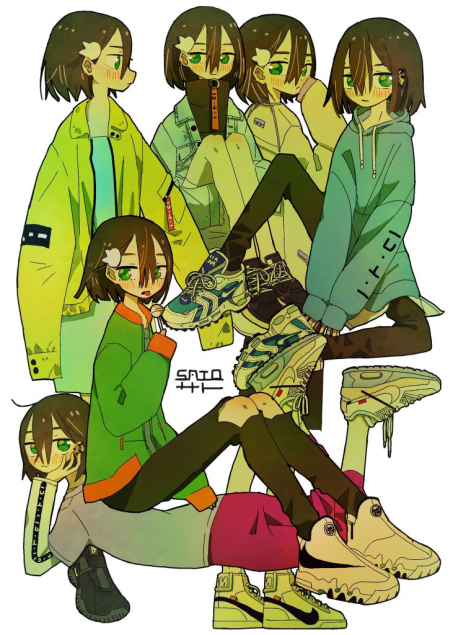 ▲オリジナルキャラクターのサトちゃん。長い前髪、細い足にがっしりしたスニーカーがギャップで可愛いと思いませんか?