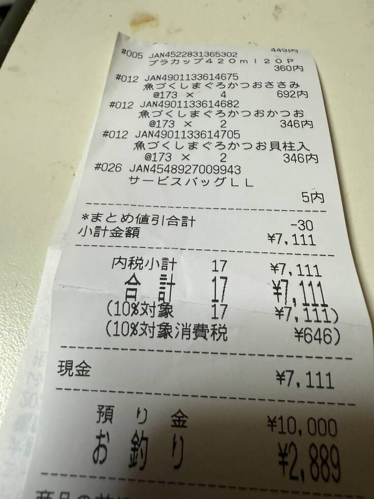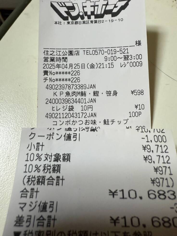 レシートが長すぎてあまり上手く張り付けが出来ていなくて申し訳ありません。