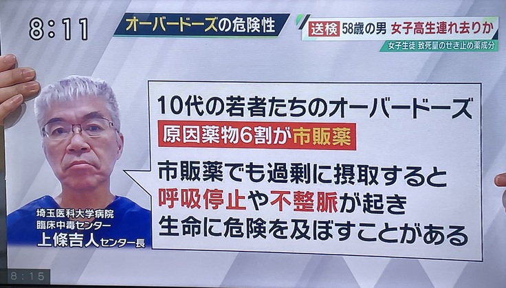 12月9日8時~放映された読売テレビのウェークアップで市販薬ODについてコメントしました!