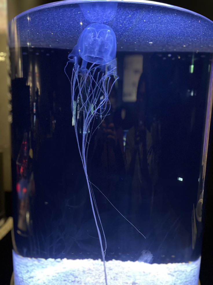 沖縄の沿岸に棲息するハブクラゲは、最も毒性の強い海洋生物の1つです。四角い立方体状の傘と、その四隅に4本の腕があり、それぞれの腕に7本程の触手を付けています。