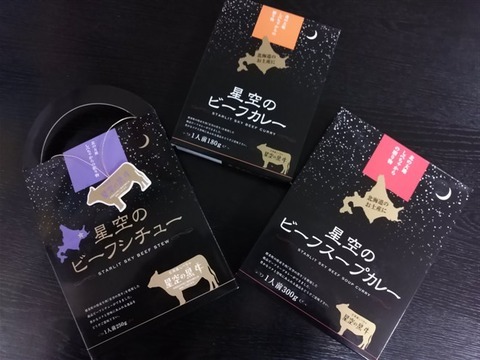 デミグラス系のルーが赤身の旨みの強いお肉の味を引き立てているカレー。星空の黒牛というロマンチックな名前にピッタリなパッケージ…。
