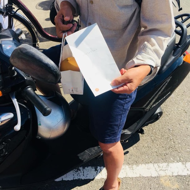 「クラファンのこと、よぉわからんけぇ」と手渡し希望の連絡をもらい「取りに行きますよ!」と言ったら「最近バイクで走るの好きなので」と粋な返事で近所まで持ってきてくれた!