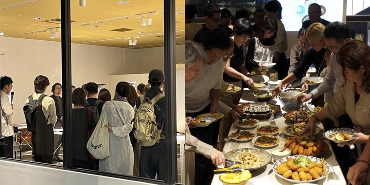 そして最後は、d47食堂に場所を移して「つづくを食べる会」へ。広島定食のメニューである「お好み焼き」や「ねぶとの唐揚げ」のほか、取材中に出会った「美酒鍋」も登場!(詳しくは広島号p.138を!)