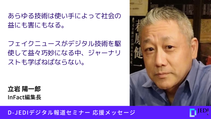 D-JEDIデジタル報道セミナー応援メッセージ:立岩陽一郎(InFact編集長)