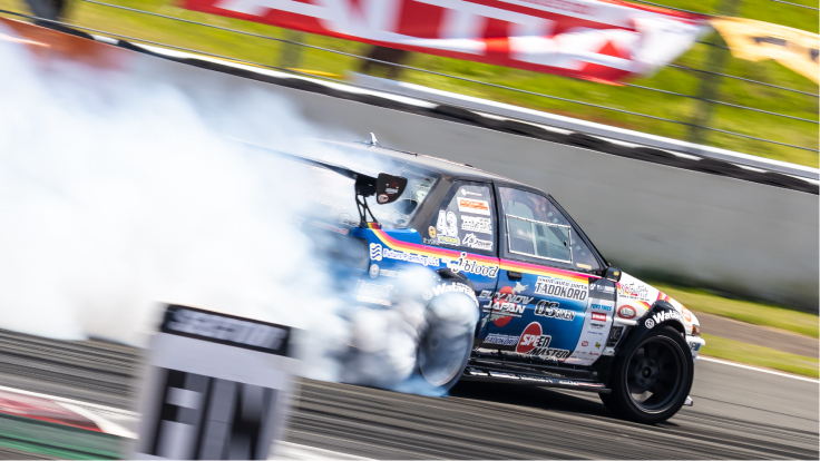 その時に見たドリフトのエンジン音、猛烈な白煙、アクロバティックなアクションに衝撃を受け、ドリフトの魅力に取り憑かれしまい、「これをやりたい!」とその時に強く思いました。