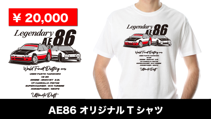 ■田所選手の2023シーズンのD1GPマシーンとオリジナルの「AE86」をモチーフにし、国内外で活躍するデザイナーがこのプロジェクトの為にグラフィックを製作しプリントしたオリジナルTシャツです。