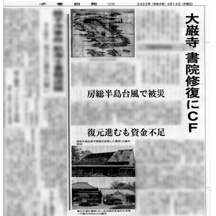 『大巌寺(千葉市中央区)書院修復にCF 房総半島台風で被災 復元進むも資金不足』