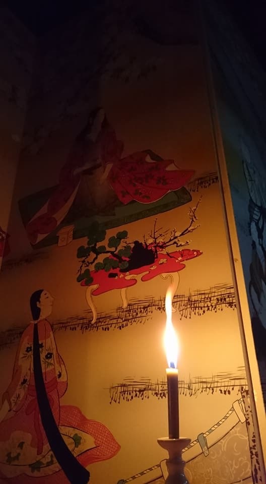 揺らめく温かい灯りの中で、人々が次第に浮かび上がってまいります。