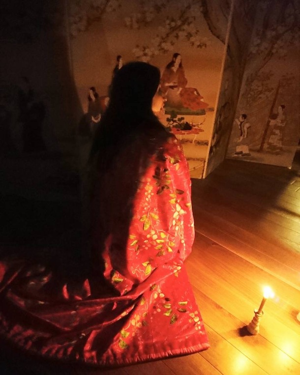 現在に至るまでに、主人公である貴婦人の打掛を実際に復元してみたりして、この屏風との関わりはずっと続いてきました。(今回は、その打掛も含めて鑑賞します)