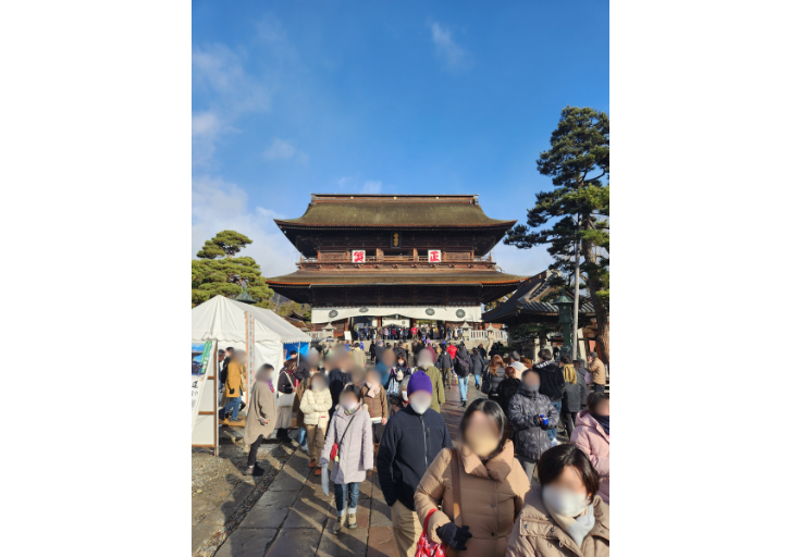 今年は新型コロナウイルスが5類に移行して初めてのお正月となりました。12月31日〜1月3日に善光寺本堂へご参拝にいらした方々は約58万7千人で、前年と比較し111%増、コロナ前の令和元年と比べても106%増とたくさんの方にお越しいただきました。