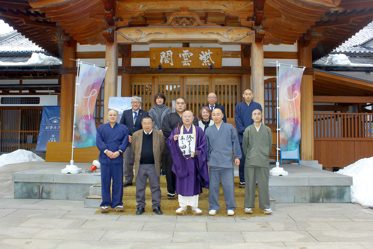 写真は会場となった大勧進の紫雲閣という建物の前で撮ったものです。
