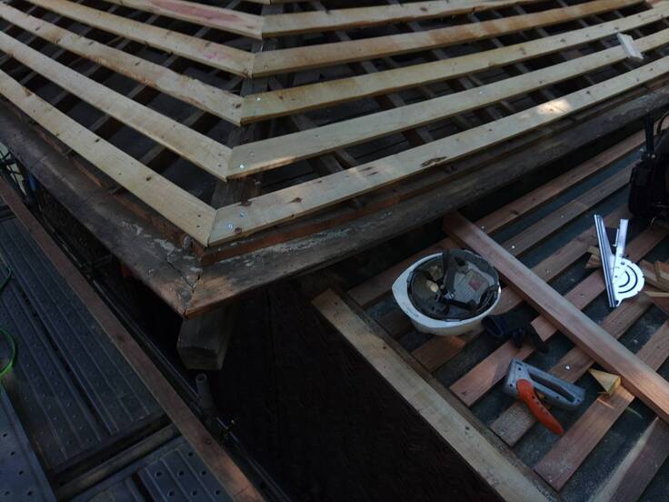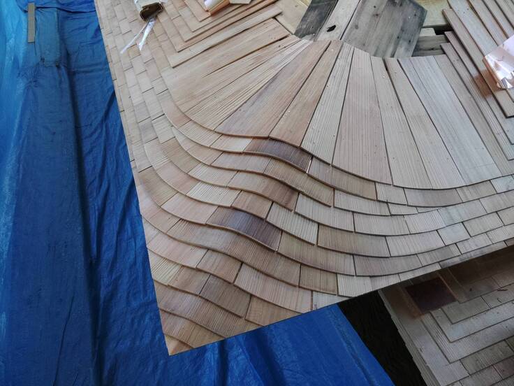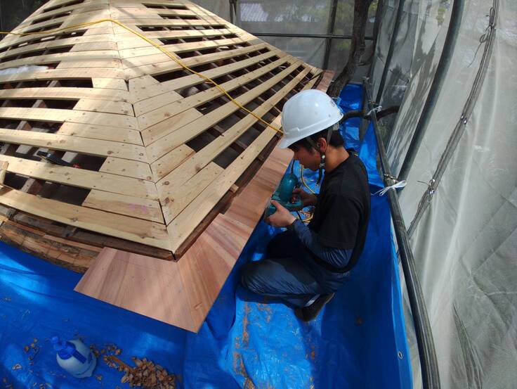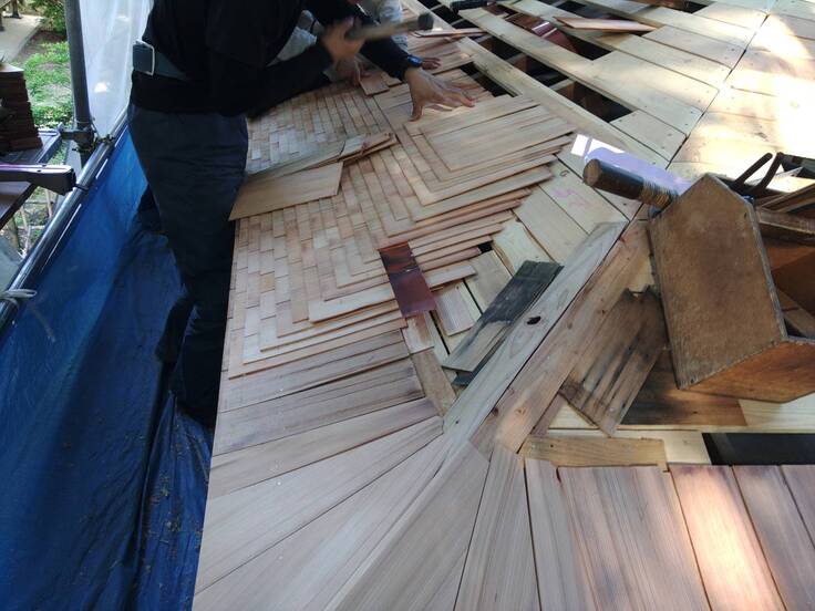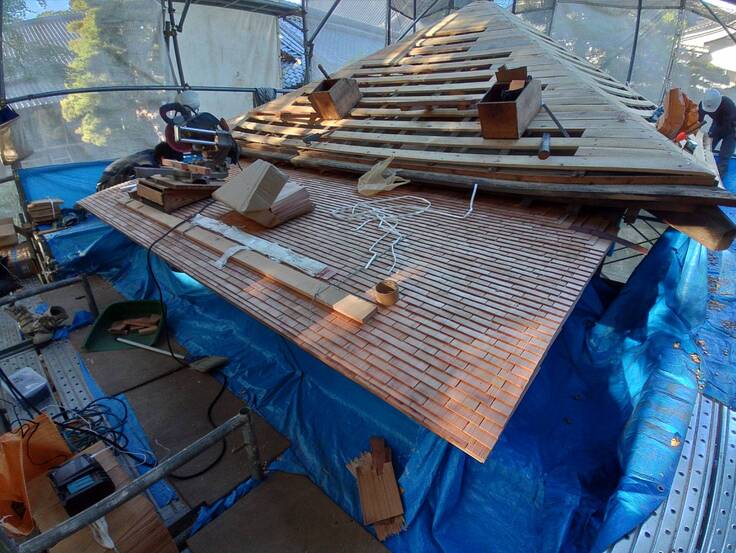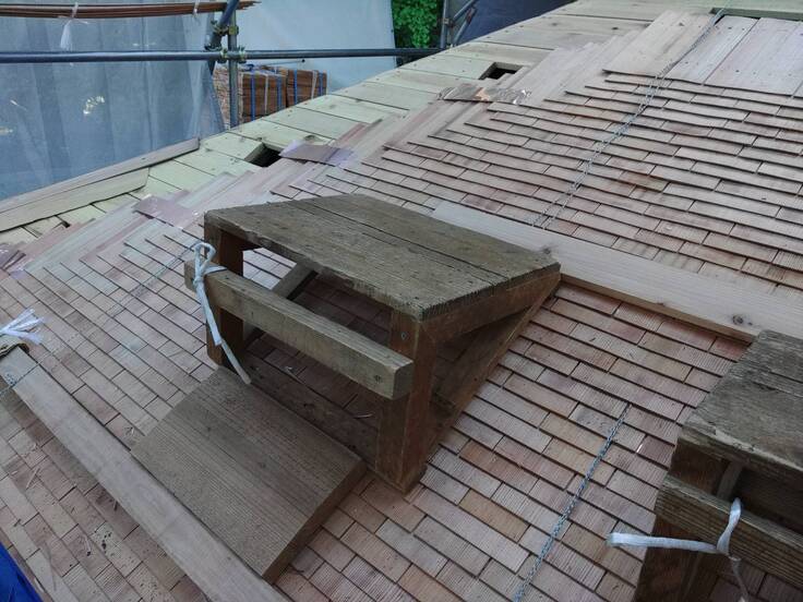 こけら葺き工事がはじまり、今週中(5月28日頃)には終了予定です。