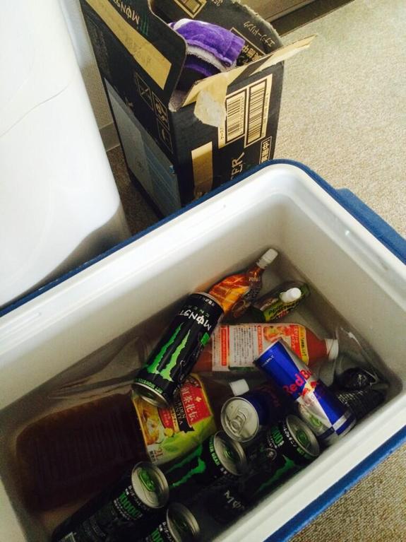 事務所に冷蔵庫がないため、クーラーボックス。
