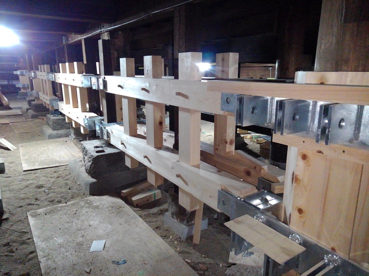 本堂床下部分には今回の耐震補強において、一番の要となる「はしごフレーム」が取り付けられています。