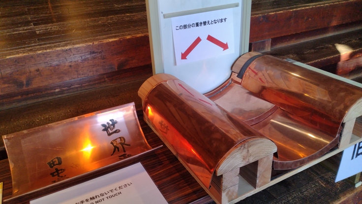大改修真っただ中の本堂は足場と素屋根に覆われています。周囲からなかなか見ることの出来ない中の様子を皆様にお届けいたします。