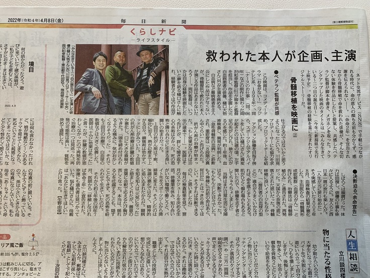 本日4月8日の毎日新聞に映画『みん生』が掲載されております。