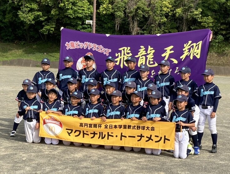 軟式野球大龍スポーツ少年団【大龍ビッグドラゴンズ】が高円宮賜杯第45回全日本学童軟式野球大会マクドナルド・トーナメント(開催地:新潟市)に出場します。いただいたご支援は、全国大会出場への資金(移動費への補填)に使用させていただきます。