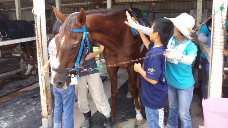 ここで育った馬たちは、性格や適性に合わせ、主な事業である会員制乗馬クラブのレッスン、ふれあいや観光乗馬のほかに、乗馬セラピーやイベント出張、園内イベントに登場するなど様々な場面で活躍することができます。
