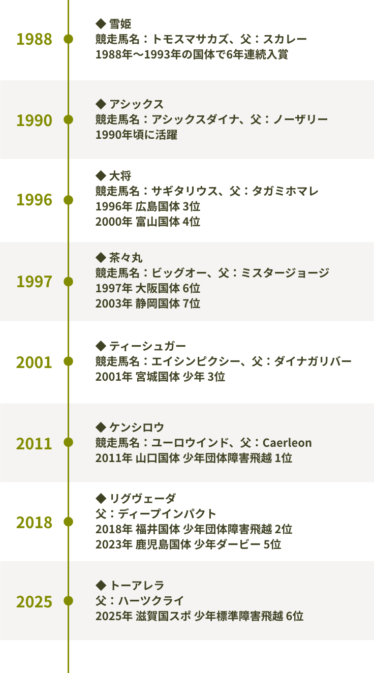 また、引退競走馬による競技会出場にも力を入れており、国民スポーツ大会などで入賞した馬も多数います。