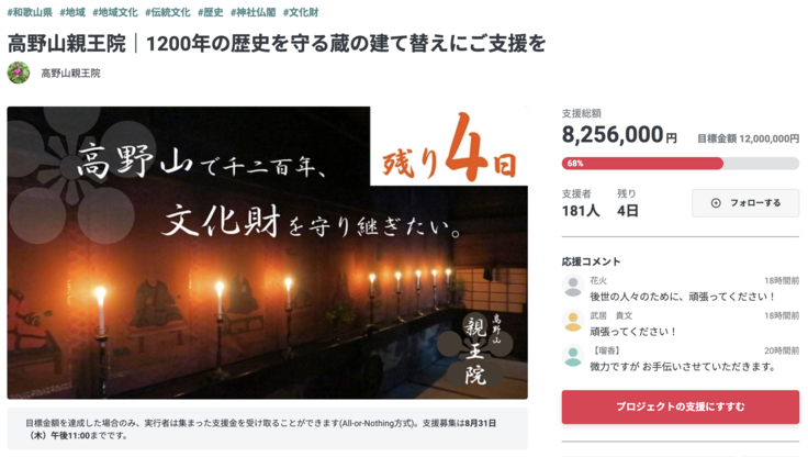 【残り4日】高野山親王院様のプロジェクトをご紹介!