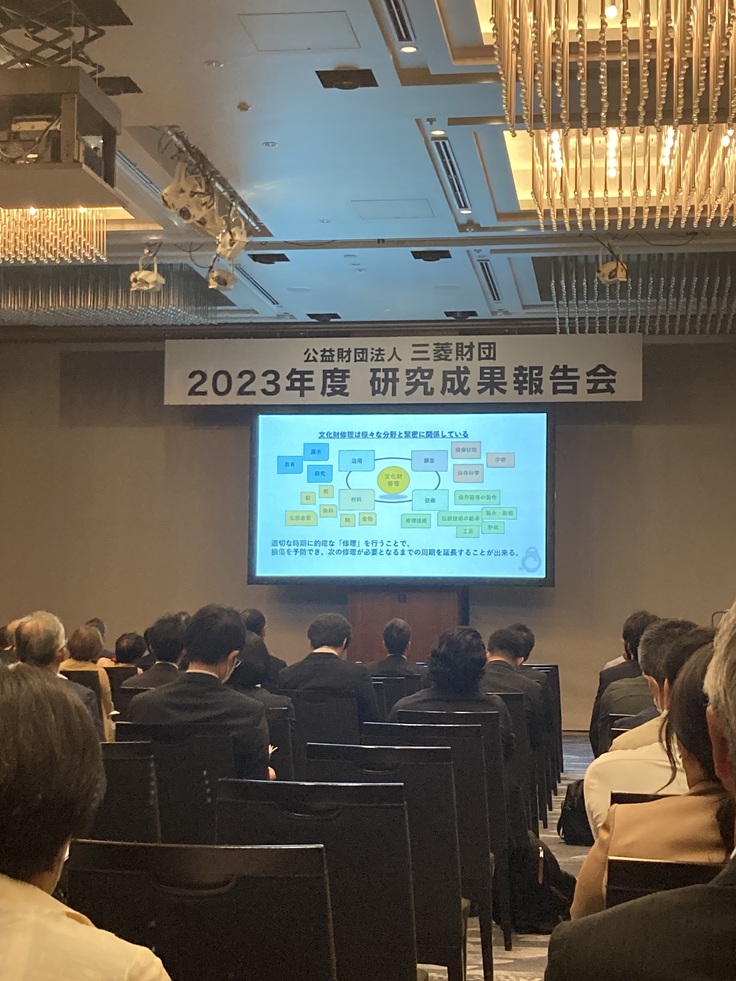 贈呈式後の懇親会では、直接、選考委員の方とお話もできましたし、他の採択者さんとお話しするのも貴重で有意義な機会になりました。改めて、三菱財団には深く感謝申し上げます。選考委員からの報告では、文化財修復は24件の応募から11件が採択されたそうです。他の補助金に比べても補助金が設立されたのが最近だったためか、採択倍率が低い気がします。