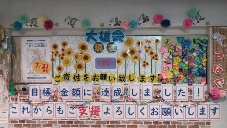 皆様のご支援を持ちまして、目標金額を超える額のご寄付をいただいております。
