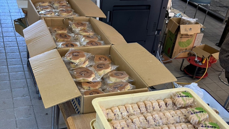 ▲避難所に和菓子を届け、大変喜んでいただきました(毎日放送さんの記事はこちら)